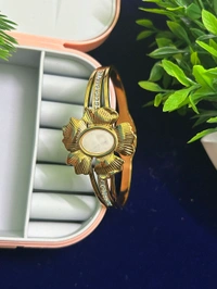 Crafted to perfection, the bangle features intricate medallion detailing, reminiscent of delicate petals gilded in shimmering tones. Its versatile design ensures it pairs beautifully with both casual and formal outfits, making it a must-have addition to your jewelry collection.